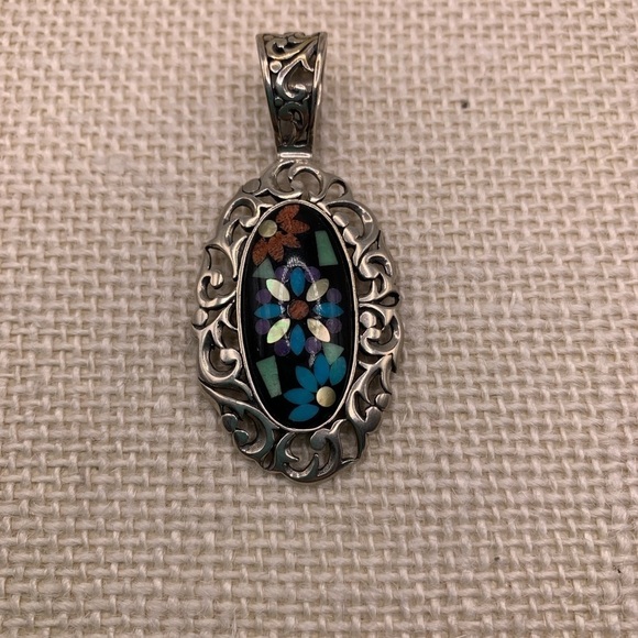 New Sincerity Southwest Inlay Oval Sterling Silver Pendant