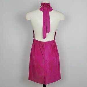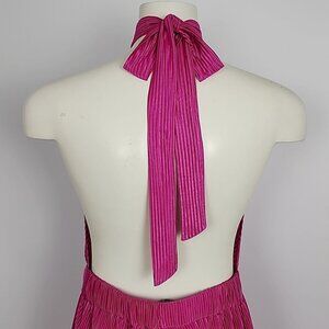 Sincerley Jules Women's Hot Pink Pleated Cross Over Halter Dress Lined Sz Medium