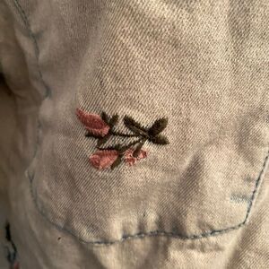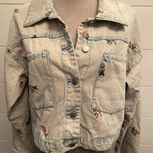 Sincerly Jules Gray and Pink Jean Jacket with pink embroidered flowers. Size M