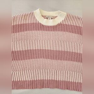Sincerly Jules Womens Pink/White Misty Waffle Crew Neck Pullover Sweater, sz LG