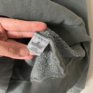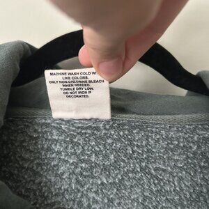 Pre-loved, has several large stains on the sleeve. Long sleeves, hooded with drawstring, front kangaroo pocket. See photos for details.