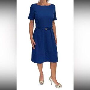Sinclaire 10 Cobalt Blue Short Sleeve A-Line Midi Dress