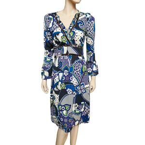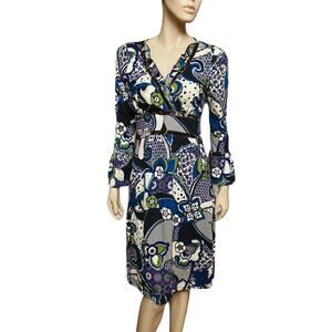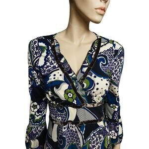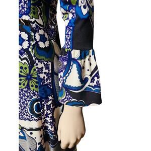 Sinequanone Paisley Print Midi Dress Long Sleeves with Bell Cuff Size 2