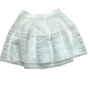 Sinequanone Paris White Mini Skirt Delicate Cut Out & Mesh Outr Layer Satin Line