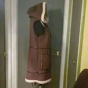 Sinequanone faux suede vest sz Large, with faux leather trim designed in Paris France.