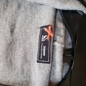 Sinequanone open cardigan sweater, no size tag but best fits an S. 33% viscose, 23% nylon, 20% wool, 15% cotton, 5% angora, 4% cashmere. Softest cardigan ever! Two front pockets. Measures approximately 20" from pit to pit measuring from back, 25" long measuring from shoulder to hem.