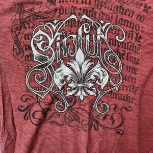 Sinful Affliction Womens Top Large Burgundy Glitter Fleur De Lis Grunge 90s Y2k