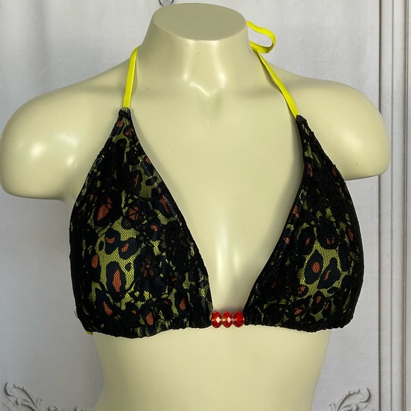 Sinful By Affliction Solar Reversible Lace Over Leopard Bikini Top Size Large Lg