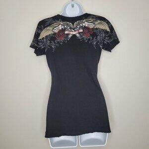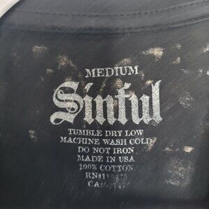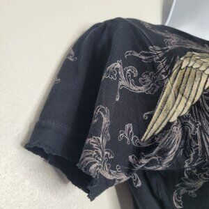 Sinful black wing distressed hems short sleeve cyber grunge goth emo shirt med