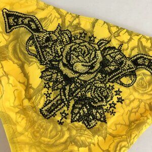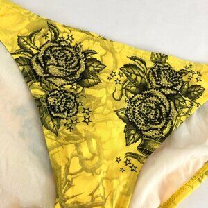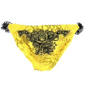 Sinful by Affliction Bikini Bottom Chain Rhinestones Roses Thorn Pistol Yellow L