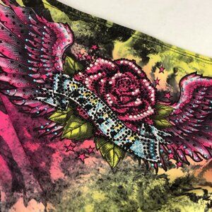 Sinful by Affliction Bikini Bottom Studded Heart Tiger Rhinestone Pink Yellow L