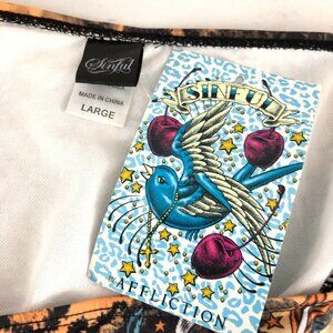 Sinful by Affliction Bikini Bottom Studded Heart Tiger Stripe Rhinestone Blue L