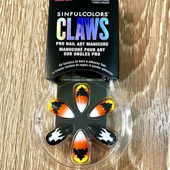 SinfulColors Claws Press on Nails. "Batass Candy Corn" Halloween Theme 24 count.