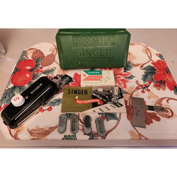 Singer Vintage Buttonholer Sewing Machine, Attachments & Case. Untested. Everything in good condition. Instruction manuel included. 1948.