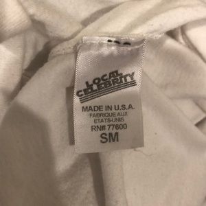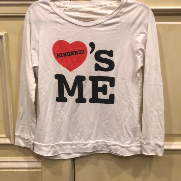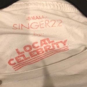 White top sold from Singer 22 with writing on the front