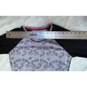 Singh Womens Rash Guard Swimwear Top Small Black Ruched Dragon Floral Stretch