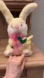 Yellow rabbit pink bow holding flower