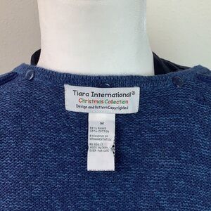 Vintage Tiara Intl. Rudolph, reindeer with added jingle bells, sequins and embroidered appliqué on this adorable Christmas cardigan zip up sweater.