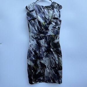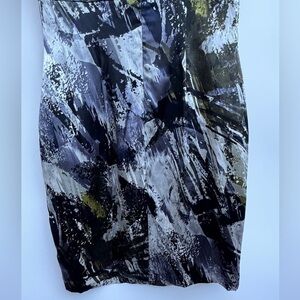 Single 100% Silk Grey Black White Splatter Abstract Palm Shift Pencil Dress 8