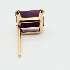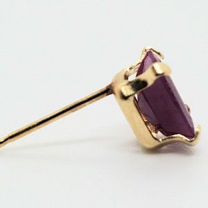 Beautiful Single 14k Yellow Gold Emerald Cut Ruby 1 Ct Stud Post Earring H12 6.2X4.3mm