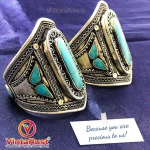 Single Afghan Cuff Turquoise Bracelet, Vintage Tribal Cuff,