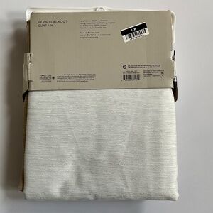 single curtain panel by Project 62. New in package. 99.9% blackout curtain. Tan color block, rod pocket with back tabs. 50in W x 84in L