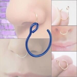 Blue single end cuff. No piercing required! Can be worn as a fake nose ring (nostril or septum), lip ring, earring (daith, helix, conch, cartilage, etc.) Easily adjustable metal. Available in other listings as silver, rose gold, yellow gold, rainbow chrome, blue, and black; both single end and double end (septum) available in every color. Made of stainless steel.