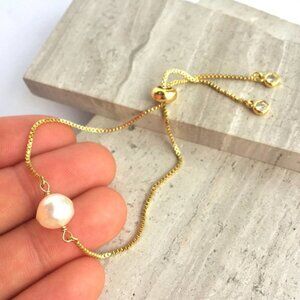 Single Freshwater Pearl Adjustable Gold Bracelet