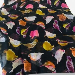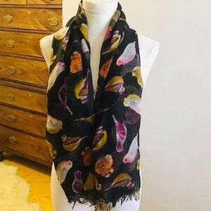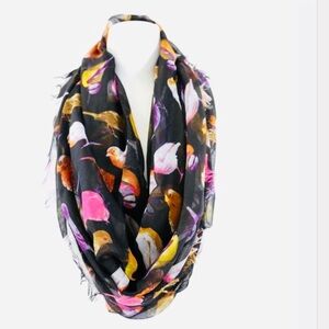 Single Infinity Songbird Scarf in Black with bright multicolored song 🎵 birds