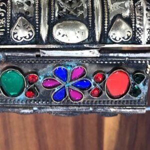 The glass stones beautified on this tribal piece are of different shapes and depict the amazing skills of our talented craftsmen from Central Asia.