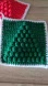 Handmade red Christmas tree hot pad, it was made with cotton yarn and it measures about 5.5 inches.