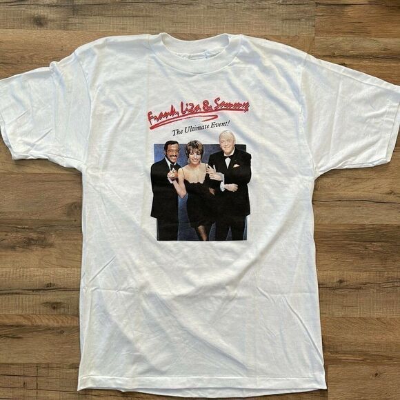Vintage Frank Sinatra Sammy Davis Liza Minelli Shirt 1989 Ultimate Event Large. Does have a stitching issue and a hole in the left sleeve. Please see pictures (5th image). Shirt is very clean. Shipped with USPS Priority Mail.
