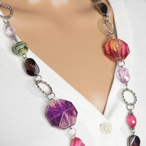 Single Strand Long Multicolored Beaded Necklace With Decorative Metal Circles