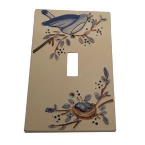 * Description: 2 Single switch plate covers with original tag attached. Blue bird on branch with their Nest below!