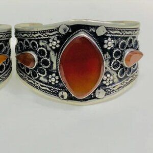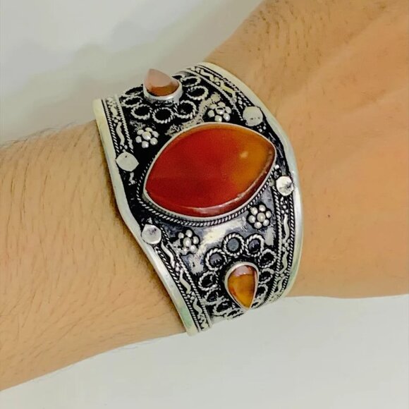 Single Vintage Kuchi Cuff Bracelet: Handmade Tribal Stone Statement Jewelry