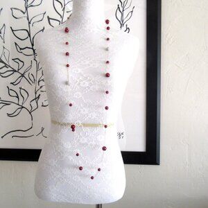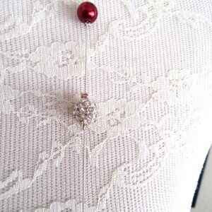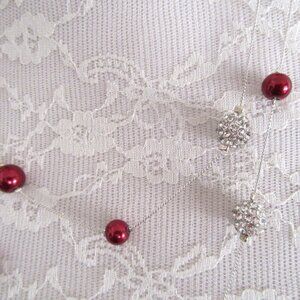 Single strand "flapper" necklace cranberry satin finish beading & rhinestones