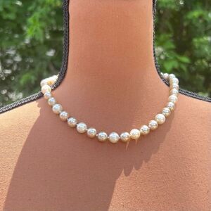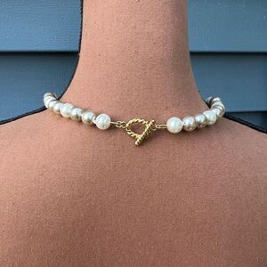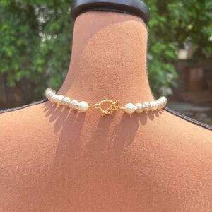 Single Strand Multi Toned Faux Pearl Choker Necklace, Bar & Hoop Toggle Closure