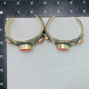 SingleTribal Coral Stones Cuff Bracelet With Turquoise Beads, Handmade Coral