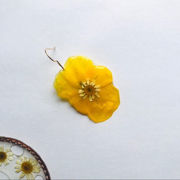 ☀️One mini daisy atop and yellow pansy coated in clear resin
