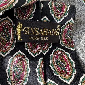 Sinsabang Silk Tie Black Geometric Design ..approx 3 3/4" at its widest and 60" long preowned..small spot on backside