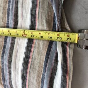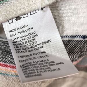This linen top is gorgeous! Beautiful neutral colors of blue, tan, and off-white, with many others. Fun open back cross pattern. 100% linen. Fun and flow he BoHo style.