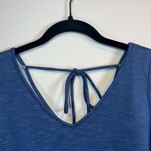 Sinuous Womens A-Line Mini Dress Blue Back Tie V-Neck Sleeveless Lined USA Large