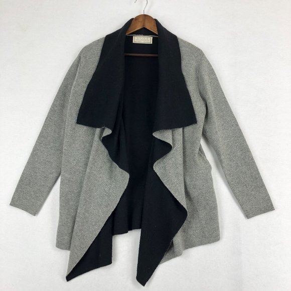 Sinuous Women's Size Medium Black Grey Wool Blend Drapey Knit Cardigan Sweater