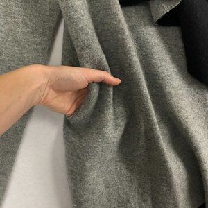 Women's black and gray wool blend drapey knit cardigan sweater. Open draped waterfall front, long sleeves, knit construction.
