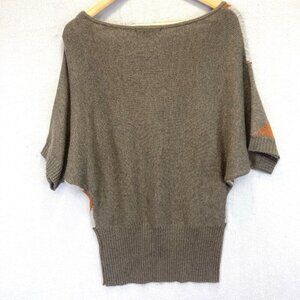 Sioni Angora Cashmere Popover Sweater Womens XS Orange Brown Short Sleeve Ribbed