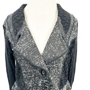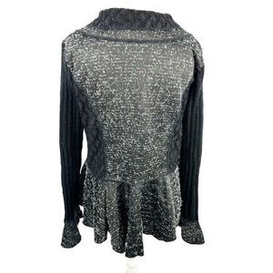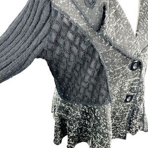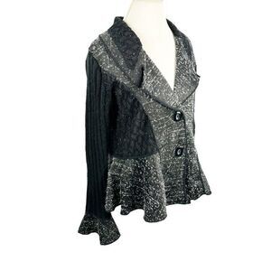 Sioni Black Cardigan Sweater Artsy Mixed Materials Flared Slvs Boho Size L