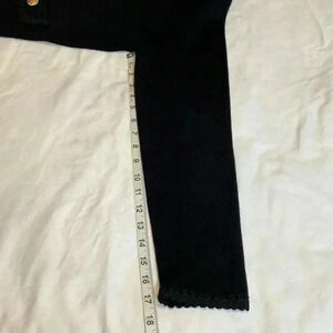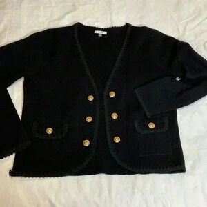 Sioni Black Open Front Cardigan Sweater/Jacket with Gold Colored Buttons, Size Medium. Good pre owned condition. Very soft, high quality fabric. Great pre owned condition.