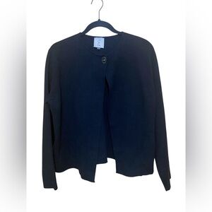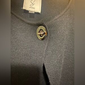 Sioni Black Open Front Cardigan with Toggle Closure in Size Large. Good pre owned condition. Fabric is very soft and substantial. Looks and feels like old money & classy.