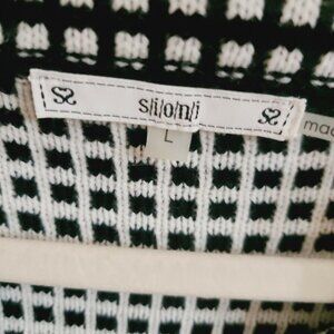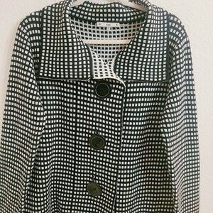 Sioni Black & White Checkered Big Button Long Sleeve Thick Cardigan Jacket sz L