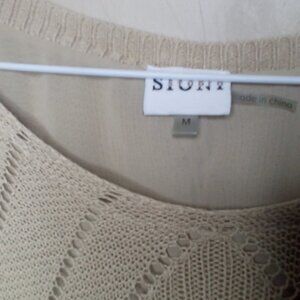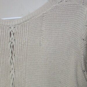 Sioni Blouse Sweater M Long Sleeve Open Knit Back Lace Up Lined Tan